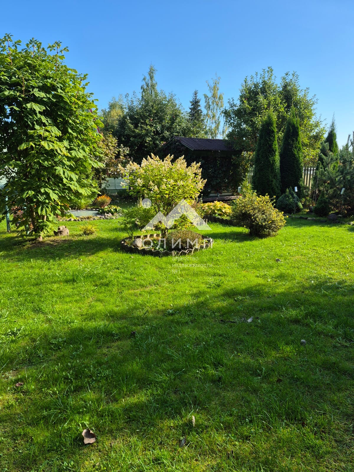 Красивая сирень, несколько видов и сортов, гортензии, тоже нескольких видов, каштан, дуб, ели маленькие и большие, орешник, две яблони, калина, черноплодка, черная смородина, сладкая ёшта (смесь крыжовника и смородины), малина, хвойники (алтайская сосна, пихты), разнообразие цветов (пионы, лилии, тюльпаны, георгины и так далее)