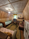 Снаружи дом обшит сайдингом с ветрозащитной плёнкой. Крыша железная. Внутри 3 комнаты обшиты вагонкой.