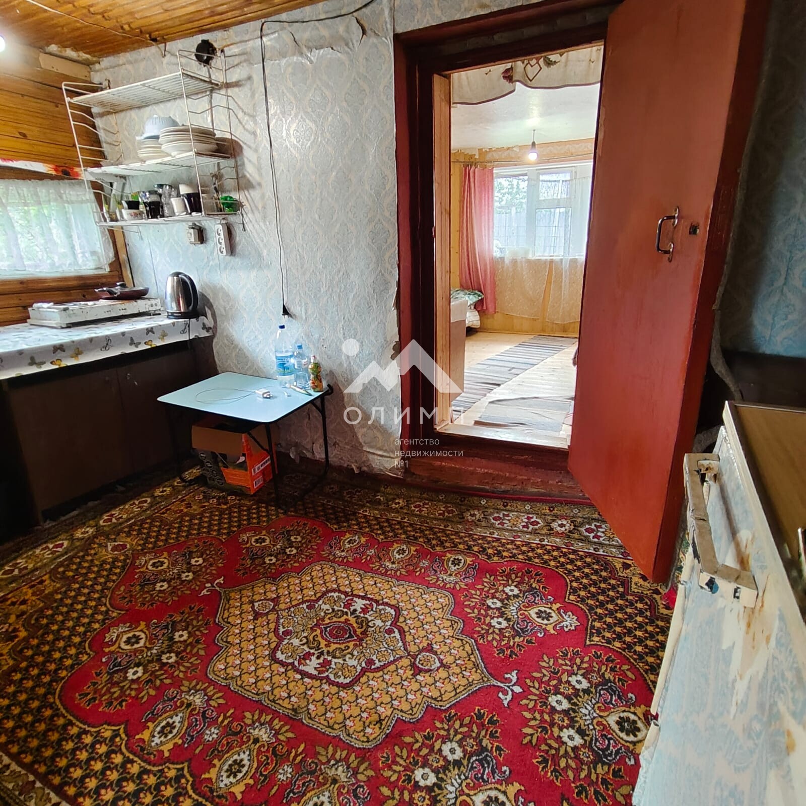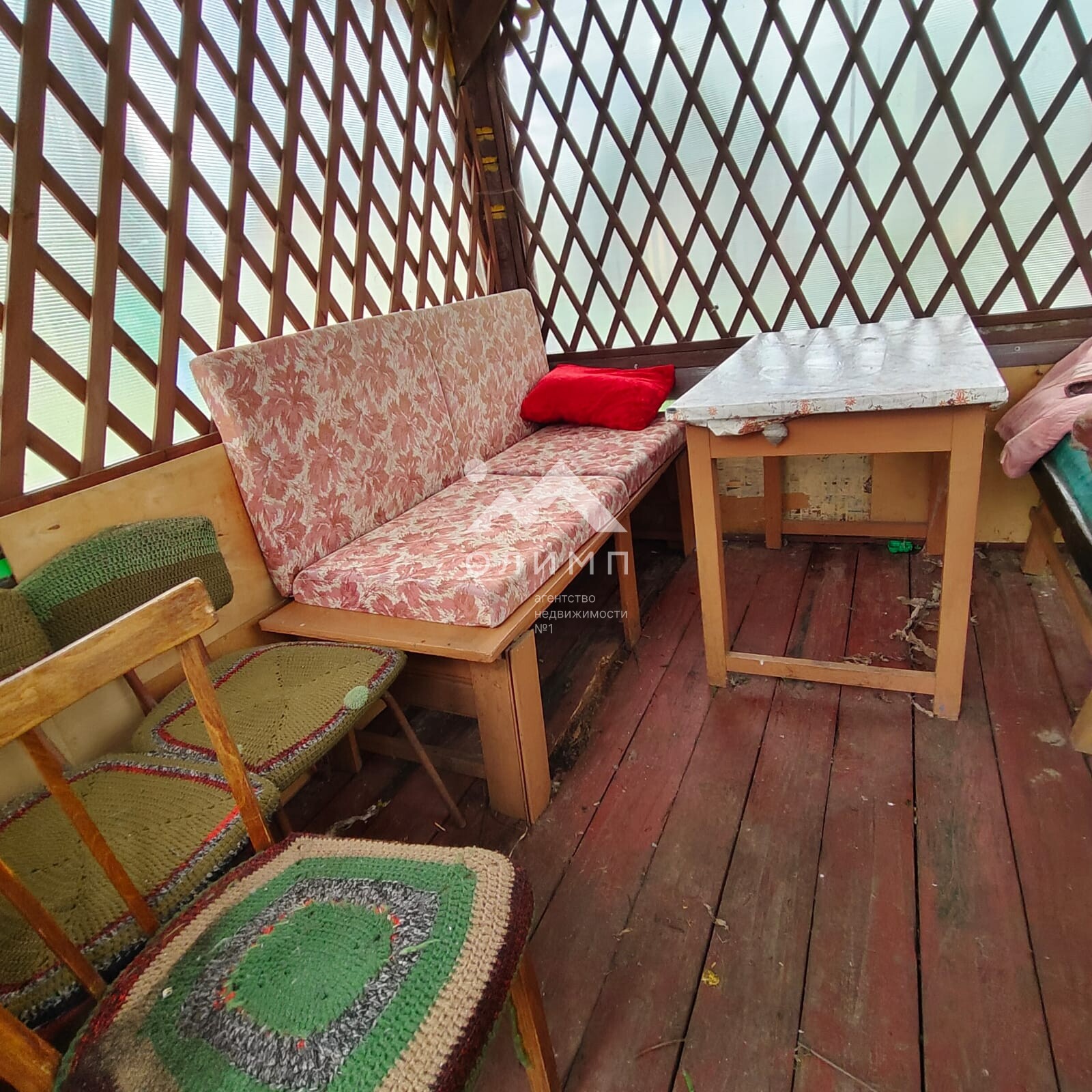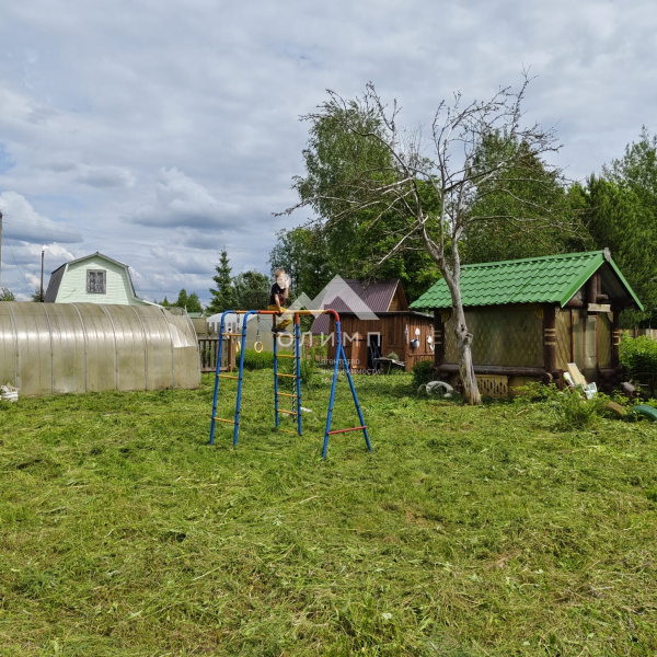 На участке имеется дачный дом (комната + кухня + входная группа), беседка, теплица, детский спортивный комплекс, хоз.постройки, баня (требует ремонта).