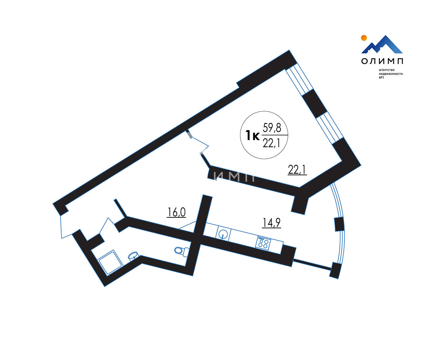 Жилая площадь 22.1 м²